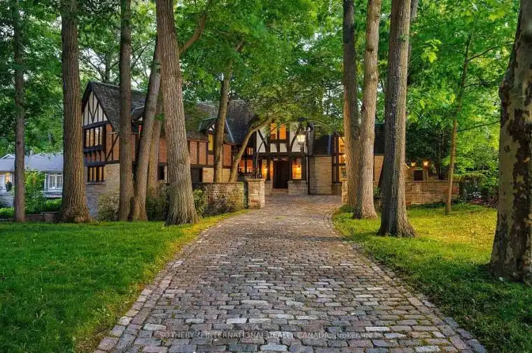 Step into elegance and history with this majestic Tudor estate, a unique gem backing onto St. George’s Golf & Country Club, this rare find offers unparalleled charm and potential. This generational home is a testament to its enduring style and craftsmanship. Its timeless appeal and meticulous maintenance ensure it stands ready for your personal touch. From the original checkerboard tile floors to beamed ceilings and four masonry fireplaces, this home radiates timeless appeal. For those looking to make this exquisite home their own, the potential for modern customization is boundless. Imagine adding a new upper-floor bathroom, dual floating wine rack walls, or modern finishes that blend seamlessly with the home’s original character. This charming estate, owned by a single family since its construction, features formal principal rooms, four masonry fireplaces, structural beamed ceilings, and dual cobblestone driveways. With parking for eight cars in the garage, multiple stone terraces, a cedar roof, and a stone-walled cobblestone courtyard, this property is designed to impress. Meticulously maintained, the estate boasts commercial-grade construction and offers level tableland at the rear, perfect for enjoying as-is or expanding as desired. Architecturally significant, this home was designed and built specifically for its unique site, commanding attention with its bespoke design and presence. This estate is more than a home; it’s a legacy. Located in the prestigious Edenbridge-Humber Valley, it offers a unique lifestyle opportunity. the neighborhood is celebrated for its beautiful homes, lush greenery, and an atmosphere of close-knit community. It combines serene, upscale living with effortless access to the vibrant energy of Toronto. Enriched by excellent schools, charming shops, and convenient highways offering a harmonious blend of tranquility and urban sophistication.