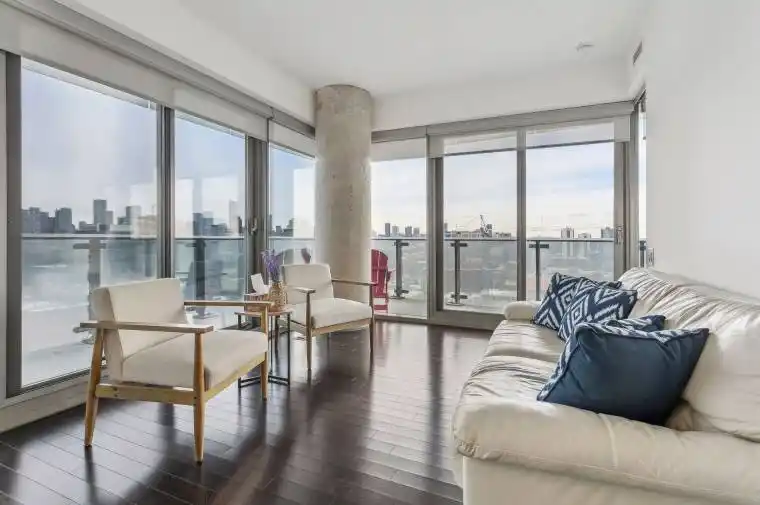 *Live the city dream in the highly coveted Distillery District: Breathtaking Views & Unrivaled Urban Luxury Await!* Imagine waking up to panoramic Northwest views of the iconic Toronto skyline, including the majestic CN Tower, from your stunning 2-bedroom + den corner suite in the heart of the Historic Distillery District. This impeccably maintained residence boasts a modern kitchen with sleek stainless steel appliances, two full bathrooms, and an expansive wraparound balcony – the perfect setting for morning coffees or unforgettable dinner gatherings. Indulge in a lifestyle of unparalleled convenience with a wealth of exceptional building amenities: from a refreshing outdoor pool and jacuzzi to a fully-equipped gym, yoga room, sauna, and steam rooms. Host unforgettable events in the BBQ area and party room, all while enjoying the peace of mind provided by a friendly 24/7 concierge. Step outside your door and discover vibrant parks, scenic bike trails, the TTC King Streetcar loop, and world-class dining, all within easy reach. Plus, enjoy the added bonus of a parking spot and a locker. This isn’t just a condo; it’s a lifestyle. Welcome to your future home!