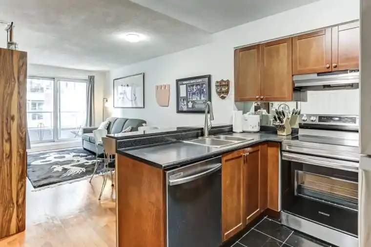Discover a Hidden Gem at Kings Court in St. Lawrence Market! This spacious one-bedroom + den offers a flexible floor plan, with the den easily convertible into a second bedroom. The unit also features a second full bathroom, providing an ideal setup for guests or additional living space. An unbelievable value. The kitchen is equipped with stainless steel appliances, ample countertop space, and plenty of storage. The primary bedroom includes a 4-piece ensuite for added comfort. With all-inclusive maintenance fees, this home offers exceptional value, truly a rare find! Enjoy a perfect 100/100 walk score and transit score, with 24-hour transit right at your doorstep. Steps to No Frills, George Brown College, the Financial District, Union Station, the Distillery & Canary District, St. Lawrence Market, boutique cafes, shops, and restaurants, with quick access to the Gardiner and DVP. You’ll love living here! No grass to cut. No snow to shovel.
