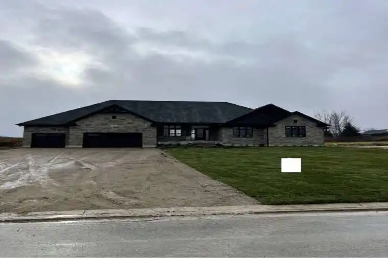 For more info on this property, please click the Brochure button. Located at 61 George St in Bright, ON (N0J 1B0), this stunning custom-built bungalow offers 3,259 sq. ft. of thoughtfully designed living space on a generous 0.7-acre lot. The property features a spacious 3-car garage and a host of luxurious amenities for modern living. The home welcomes you with soaring 9-foot ceilings on the main floor, an elegant 11-foot foyer, and a formal dining room with matching 11-foot ceilings. The open-concept layout connects a generous kitchen, a dinette, and a grand great room with a striking 12-foot raised ceiling and a modern linear gas fireplace. The kitchen is a chefs dream, featuring a large black island, space for a bar fridge, modern custom white perimeter cabinets, and a walk-in pantry for added storage. The home offers 4 bedrooms and 3.5 bathrooms, including a luxurious primary suite. The primary bedroom boasts a stunning ensuite with a freestanding tub and an expansive 19-foot walk-in closet. Additional highlights include a large mudroom, a second walk-in closet, and upgraded quartz countertops paired with sleek black Moen plumbing fixtures throughout. Step outside to enjoy the covered patio, perfect for outdoor gatherings or relaxing while overlooking the spacious lot. The unfinished basement, complete with a rough-in for a 3-piece bathroom, provides endless possibilities for customization. With its blend of luxury, functionality, and space, this property is ideal for families or anyone seeking a serene and stylish retreat in a desirable neighborhood.