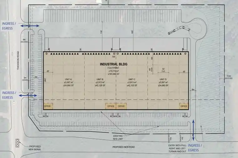 Design-build purchase opportunity in prime Whitby location. +/- 193,000 SF proposed freestanding building with the opportunity to customize to suit. Pending site plan approval. Access to variety of amenities & large labour pool. 130′ shipping court depth, 54’x40′ bay sizing & 60′ staging bay. 59 trailer parking stalls. Heavy power available. LEED & Zero Carbon certification available