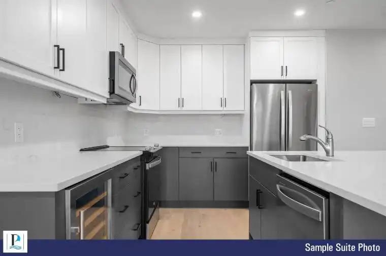 PORT PICTON – A luxury Harbourfront Community by PORT PICTON HOMES: The TAYLOR building – Enjoy the ease of stylish condominium living! This building hosts 42 condo suites with balconies or terraces, climate controlled underground parking and storage lockers. Suite 104 (990 sq ft) corner suite features 2 spacious bedrooms, 1.5 bathrooms and expansive kitchen and living/dining room looking out to your balcony. Standard features include engineered hardwood throughout, quartz countertops, tiled showers/tubs, and more. It’s a quick walk to the Claramount Club that will host a new fine dining restaurant and pub, spa, fitness facility, indoor lap pool, tennis court. Experience the tranquility of Port Picton with freedom from property maintenance. Condo/common fees $316.80/mth.