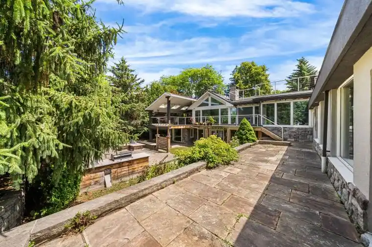 MODERN SPLIT- LEVEL Architectural DESIGN!~ RENOVATED And Designed WITH Entertaining In Mind~Unique Offering On MANICURED 100X250 Lot. Soaring Vaulted Ceilings/ FLOOR- TO CEILING Windows &Ample Natural Sunlight. Multiple FIREPLACES. . Party Room, Spa, Bar, Multiple W/Outs To Covered Veranda TERRACE!~ Private Master Suite On Its Own Floor WITH LAVISH 8 – PIECE EN-SUITE ANDPRIVATE WALK-OUT TO Serene Rooftop Terrace Over-Looking PRESTIGIOUS ‘Oakbank Pond’. FINISHEDOPEN CONCEPT Walk-Out LOWER LEVEL Completes This One Of A Kind Home.