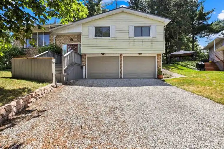 Welcome to this lovingly maintained, original-owner raised bungalow, nestled on a quiet, family-friendly court with no rear neighbours. Situated on a spacious pie-shaped lot surrounded by mature trees, this home offers privacy and tranquility just minutes from shops and amenities. The main level offers 3 spacious bedrooms, including a primary with ensuite privilege, and a bright open-concept living and dining area with newer laminate flooring. The lower level boasts a large rec room with a cozy wood-burning fireplace, a second full 3-piece bathroom, and inside entry to the double car garage. A separate entrance and ample driveway parking add to the homes functionality. Updates include a durable steel roof, newer furnace and A/C (2 yrs old), and 200 amp breakers, this home has been thoughtfully updated for long-term peace of mind. This is a rare opportunity to own a well-cared-for home on a premium lot in a desirable location!