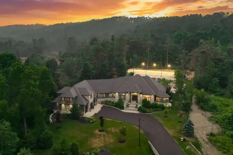 This incredible home seamlessly blends luxury and modern comfort for a dynamic dream lifestyle across more than 10,000 square feet of finished living space. Gourmet kitchen and a butlers pantry, massive living/dining space, soaring ceilings and a floor to ceiling wall of windows that opens to a private outdoor paradise. The primary bedroom is a serene retreat, complete with an electric fireplace and spa-inspired ensuite, huge walk in closet and sliding doors leading to the outdoor living space. Guests or inlaws will appreciate the beautifully finished loft suite and hobbyists will love the massive heated garage and workshop. The fully finished walkout basement is complete with games, gym with an ensuite, sauna, theatre room, 3 bedrooms (with 1 currently being used as a media/office room, and 1 being used as the gym), bathroom and tons of storage. The private resort-like backyard setting features beautifully landscaped grounds, a heated saltwater pool, hot tub, covered porch, wood-burning outdoor fireplace, and a cabana equipped with its own bathroom and wet bar. Enjoy friendly games of basketball, pickleball, or tennis on the multi sports court in the summer then watch it transform into your own private hockey/skating rink once the snow falls. This phenomenal home sits on over 2 acres of private enjoyment in the prestigious enclave of Midhurst and offers the best of indoor and outdoor living, thoughtfully designed for connection, fun and family memories year-round.