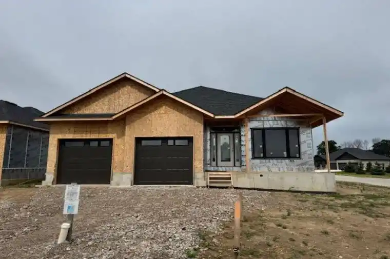 One of our favourite plans. This 2 + 2 bedroom 3 bath bungalow is located in one of Port Elgin’s newest streets at 300 Ridge Street; on the south end of town close to walking trails and the beach. Boasting 1605 Sqft on the main floor with vaulted ceilings in the principle area; 9 foot ceilings in the balance, quartz kitchen counter tops, walk-in pantry, gas fireplace, tiled shower in the ensuite bath, hardwood staircase from the main floor to the basement, and hardwood and ceramic flooring. The basement is finished with the exception of the utility room and will feature a family room, 2 bedrooms and 3pc bath. Exterior finishing includes a sodded yard, pressure treated covered deck 10 x 28’3 and double concrete drive. Bonus extras include central air conditioning and automatic garage door openers. HST is included in the list price provided the buyer qualifies for the rebate and assigns it to the Builder on closing. Colour selections may be available to those that act early. Prices subject to change without notice