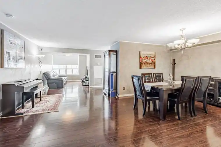 Spacious & bright 2+1 Bedroom, 2 Bathroom with Parking & ***LARGE EXCLUSIVE LOCKER ROOM INCLUDED, SAME LEVEL AS UNIT*** great for storage and convenience!*** Excellent split-bedroom layout with second ensuite bathroom + ample closet space in primary bedroom, hardwood floors throughout with custom professional “venetian stucco” wall design, ceramic tiled kitchen/bathrooms, updated kitchen counter with under-mount double-sink, stainless steel appliances, formal dining room area with plenty of space throughout to enjoy! Excellent amenities include swimming pool, gym, bowling, party/meeting room, security system/guard, visitor parking & more!