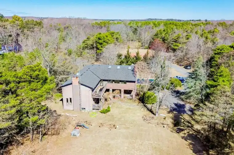 Nestled and tucked away, this 5 acre estate home is over 5000 sq feet and surely to impress. Complete privacy invites you to feel like you are away at the cottage, when you are only 7 min to Hwy 404. There is a large heated workshop with 4 stalls ideal for those looking for an equestrian focused property or a cottage feel near the city with an oil furnace. The home has 4 spacious bedrooms including one bedroom with walkout to stunning sun room to enjoy your morning cup of coffee or take in the beauty that surrounds you. Gourmet kitchen with built in appliances, breakfast room combined with mezzanine dining perfect for entertaining. Great room with adjacent room that can be used as another bedroom or office. Plenty of natural light throughout the home. Large swimming pool to enjoy summer days. 4 wood fireplaces to keep you warm in the colder months. High efficiency boiler. Primary bedroom features 4 pc ensuite with steam shower built in. Finished basement with den, common room, and 2 additional bedrooms. Plenty of storage space throughout. The property comes with a self contained coach house needing finishing touches, perfect for nanny quarters or income potential.
