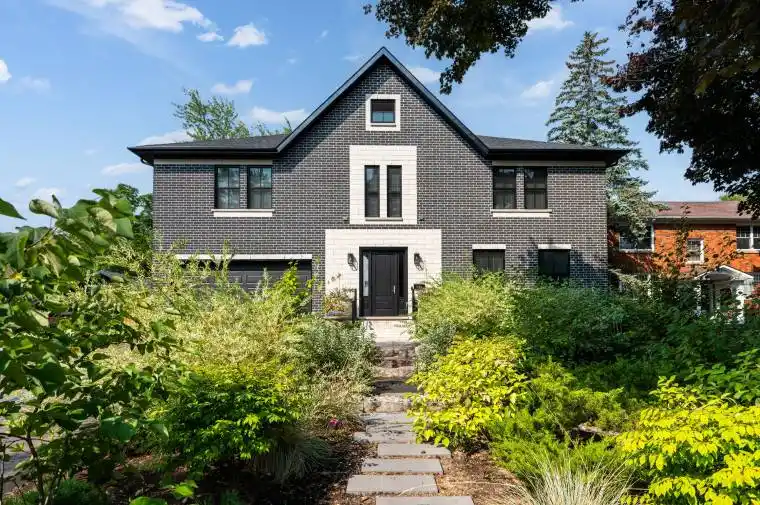 Exquisite and classic, this new home is located in an unbeatable downtown location, within walking distance to Queen’s University, Kingston General Hospital, and Hotel Dieu Hospital. Built in 2023, this professionally designed 2.5-storey brick residence offers over 4,000 sqft of contemporary living space on a large, beautifully landscaped lot in one of Kingston’s most sought-after neighbourhoods – Earls Court. Backing onto Oakridge Park with no rear neighbours, it’s a true retreat in the heart of downtown. Every design element has been thoughtfully curated, from intricate tile work to antique doors that add timeless charm. The chef’s kitchen features quartzite countertops, a double-wide waterfall island, induction cooktop, built-in oven, convection microwave, bar fridge, wet bar, and a bay window with a built-in breakfast seat. The open-concept kitchen, dining, and living areas face west and overlook the verdant backyard. Hardwood floors run throughout the house, while in-floor heating provides added comfort in the dining area, main floor bath, and primary ensuite. Two three-season porches open onto a terraced patio and expansive lawns surrounded by perimeter gardens. A versatile front room, currently an in-law suite with laundry and a four-piece bath, could also serve as an office. The gorgeous hardwood stairwell opens to the second floor and winds past a stunning mural designed with the home’s colour palette. Upstairs is the primary suite, two additional spacious bedrooms each with private ensuites, a laundry room, and a large study with pivoting French doors. The primary suite wraps around the south end of the house and includes seven windows, a walk-through closet and an ensuite with a freestanding tub, walk-through shower, dual vanities, and heated floors. The finished third-floor vaulted bonus space is perfect for a kids room, office, or studio. Additional features include a crawlspace for extra storage, a heated two-car garage, and a large private driveway.