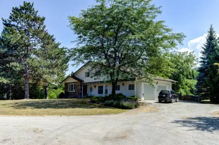 Country Living, Minutes from Town! Wake up to birdsong, enjoy nature in your backyard, and explore the nearby Bruce Trail, all just 10 minutes from Collingwood! Discover this charming 3-bedroom 3 bath 3859sqft home nestled on over 2 acres in a serene setting with easy access to Collingwood, Blue Mountain and the Bruce Trail. Enjoy the sun-filled eat-in kitchen with walkout to the backyard, where you’ll be surrounded by trees, birds, and privacy. Featuring a family room with propane gas fireplace and formal living room with vaulted ceilings and wood burning fireplace. Heat Pump offers economical heating throughout. Brand new water softener system. The full, partially finished basement offers plenty of space to customize, while the current laundry, storage, and workshop area could be converted back into an attached double-car garage. A separate detached two-car garage, ample parking, and sweeping views add to the appeal. On school bus route. This property offers endless potential, bring your ideas and make it your own!