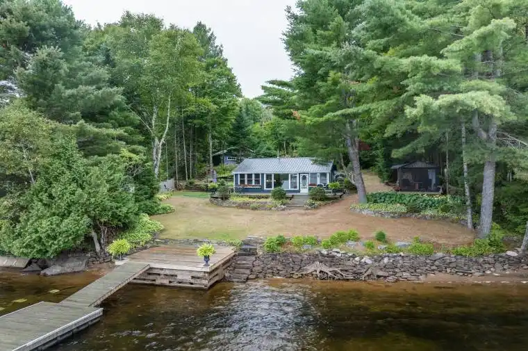 Welcome to this stunning year-round cottage sitting right at the water’s edge on the south end of Haliburton Lake. Perfectly turn-key, this property offers incredible lake views from every angle, with a large lakefront deck, enclosed porch, and multiple outdoor living spaces to enjoy. Step inside to a warm and inviting open-concept living and dining area, complete with vaulted ceilings, tongue-and-groove pine walls, and a woodstove for cozy evenings. The updated kitchen is spacious and functional, while the 3 bedrooms provide plenty of room for family and guests. The lakeside primary bedroom offers breathtaking views, and the updated 3-piece bathroom features heated floors for added comfort. The beautifully landscaped property includes stone pathways, gardens, and multiple sitting areas. Enjoy a clean sand shoreline with deeper water off the dock perfect for swimming and boating. Additional features include a finished 3-season bunkie for extra living space, a side patio with awning, and an enclosed lakeside gazebo. Behind the cottage, you’ll find an oversized, heated and insulated one-car garage with ample storage, a private ‘man cave’, rock gardens, and plenty of parking. Haliburton Lake is part of a sought-after 2-lake chain with premium boating into Oblong Lake. Located just minutes from Fort Irwin’s restaurant, gift shop, and marina, and only 20 minutes to Haliburton Village for shops and amenities. All of this is only 2.5 hours from the GTA. This property truly has it all – don’t miss your opportunity to book a private viewing today!