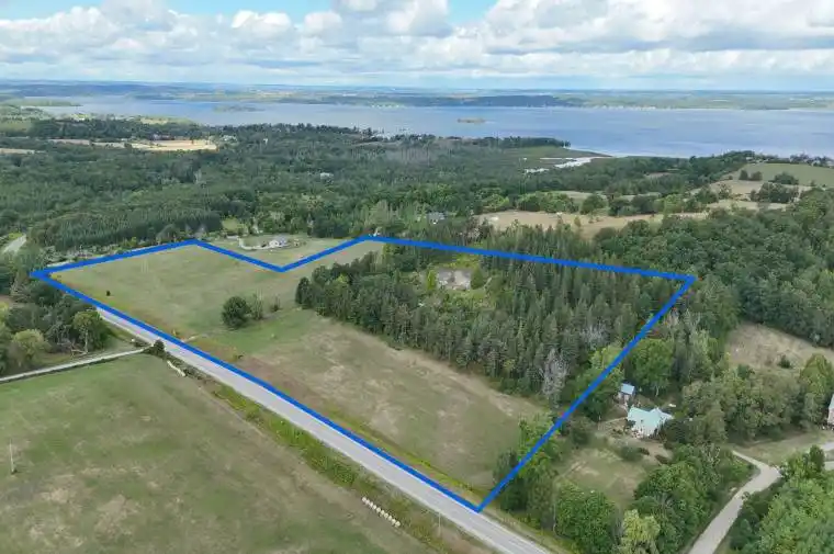 Click on video button to watch fabulous drone video. With frontage on Goose Creek Rd and Rice Lake Scenic Drive, this is a rare 17.44-acre parcel offering panoramic views of Rice Lake and the rolling Northumberland countryside. This exceptional property combines accessibility with privacy. Goose Creek Road is a small enclave of private upscale homes. A large portion of the land has been professionally cleared and prepped for your dream build, complete with a temporary construction entrance, site plan, septic and entry permits already in place. Drafted bungalow plans available as well. Approximately 12 acres are currently rented to a local farmer for hay, ensuring low-maintenance land stewardship while you plan your future home. Mature pines and a gently elevated building site ensure year-round scenic vistas and a tranquil, private setting ideal for peaceful country living. Just 15 minutes north of Cobourg and an easy commute to the GTA or Peterborough, this is a big, beautiful piece of land where you can create the lifestyle you’ve always imagined. Be sure to watch the spectacular drone video to fully appreciate this one-of-a-kind offering.
