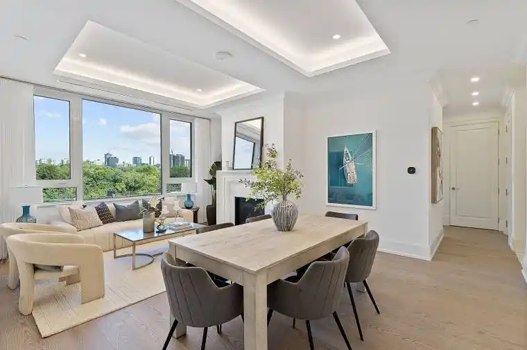 Yorkville perfection, this nearly 1600 sq ft condo is a gem within a premier boutique building, located in the city’s best neighborhood. This residence boasts numerous luxurious upgrades, including elegant hardwood floors and marble finishes in all three bathrooms. The kitchen features stunning marble countertops and a matching slab backsplash, creating a seamless and sophisticated look with top of the line built in appliances. The living area is enhanced by a romantic gas fireplace with a custom mantle, perfect for relaxing romantic evenings. Two charming juliette balconies (one in each bedroom) offer a touch of flair, with lovely clear views over the leafy green treetops of Ramsden Park. The custom coffered ceilings with recessed lighting add an extra layer of elegance and sophistication to the home. Relaxing evenings in the den, with wall-to-wall built-in millwork to provides exceptional storage and a refined aesthetic. A bright and generously sized primary bedroom features a custom walk in closet interior, designed to maximize space and organization and a 3 piece marble ensuite. This condo is a perfect blend of luxury and comfort, making it an ideal home in one of the city’s most sought-after locations.