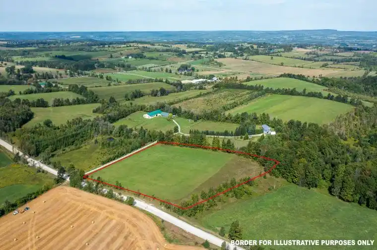 Private and scenic 6 acre lot with south-west exposure and beautiful views of the countryside. Lots of space for a garden, barns, and pasture if desired. Road is being paved. Land has been used as a hayfield for the last 25 years without the use of chemicals. Near Meaford and Thornbury with easy access to Grey Rd 12 . Building envelope approved .