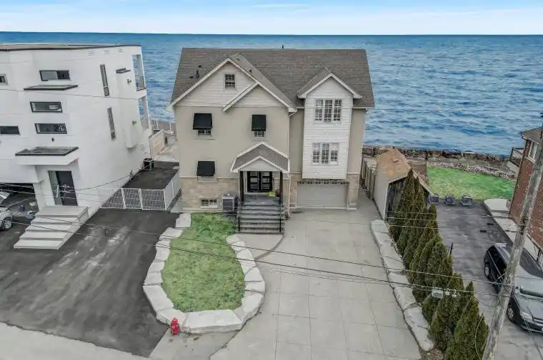 Ultra-Rare Lakefront Estate, Enjoy Direct Waterfront Living with Unmatched Investment Potential. Experience one of Ontarios most exclusive lakefront properties, an irreplaceable waterfront estate offering unobstructed views of Lake Ontario and the Toronto skyline from nearly every room. Spanning over 3,000 sq. ft. across five meticulously designed levels, this architectural gem is tucked between Fifty Point Marina and a sandy beach, surrounded by luxury custom homes on a private road. Every level boasts its own walk-out balcony, delivering breathtaking sunrises and golden-hour sunsets that make everyday living feel like a private yacht cruise. Whether you’re seeking a luxury primary residence, a serene seasonal escape, or a high-yield short- or long-term rental, this property delivers. Step into a chefs dream kitchen featuring quartz countertops, a stunning waterfall island, and premium built-in appliances. Elegant hardwood floors, a floating maple and glass staircase, and a sleek electric fireplace create an elevated ambiance throughout. The spacious primary suite is a sanctuary, complete with a spa-inspired ensuite featuring a jacuzzi tub and modern floating vanities.The newly finished lower level (2021) offers a versatile fourth bedroom or recreation space with a full bathroom ideal for guests or additional rental income. Enjoy direct lake access for paddle boarding, kayaking, or swimming, and unwind in your private hot tub under the stars.Located just minutes from the QEW, future GO station, Costco, renowned wineries, and farm-fresh markets, this home is perfectly positioned for both convenience and escape. Freehold lakefront properties of this caliber are extremely rare, making it an exceptional opportunity for Canadian or international investors seeking a high-appreciation asset with strong income potential.