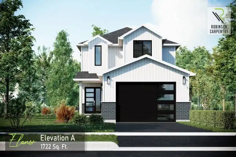 Welcome to Ausable Bluffs, a master-planned community in the beautiful small town of Ailsa Craig, located just 20 minutes north of London. This growing neighbourhood combines small-town charm with modern living, making it the ideal place to call home. The Elanor model by Robinson Carpentry offers 1,722 sq. ft. of thoughtfully designed living space. The main floor features an open-concept layout with a bright dining area, spacious living room, and a modern kitchen with island. A convenient mudroom, powder room, and a spacious garage add to the functionality. Upstairs, you will find a private primary suite with walk-in closet and ensuite, along with two additional bedrooms, a full main bath, and a handy second-floor laundry. This home also comes equipped with an owned on-demand hot water tank giving you energy efficiency and one less monthly payment to worry about. With its modern farmhouse-inspired curb appeal, quality finishes, and a welcoming community setting, The Elanor at Ausable Bluffs is a home designed to grow with your family. Includes Tarion warranty. Fully graded and sodded lot. Rendition is for illustration purposes only, & construction materials may be changed. Taxes & Assessed Value yet to be determined.