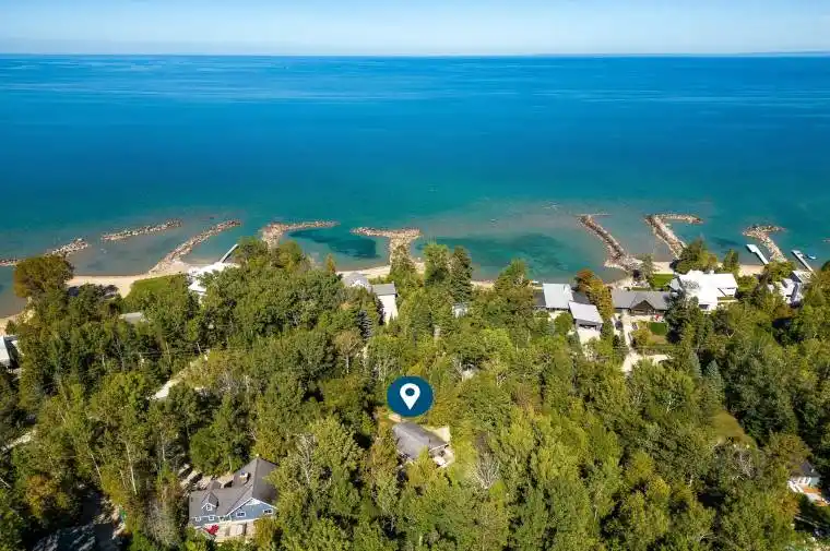 Welcome to Cameron Street – one of Thornbury’s most coveted addresses. This tree-lined, winding road hugs the shoreline of Georgian Bay, offering a setting of unmatched charm and beauty. Nestled on one of the largest lots on the street, this property is surrounded by mature trees and lush gardens, providing a rare sense of privacy and tranquility. Step outside and you’re just moments from a Georgian Bay access point, where you can listen to the waves rolling against the shore or launch your paddle board into the crystal-clear water. Start your mornings with coffee on the elevated deck, watching the sun rise through the trees, and spend your afternoons walking or biking the Georgian Trail into downtown Thornbury to enjoy boutique shops, cafés, and restaurants. Pick up dinner at Goldsmiths, then return home to savour the serenity of Cameron Street living. Inside, the home is designed with a reverse floor plan to maximize natural light and views. The main level offers three comfortable bedrooms that share a well-appointed bathroom, with laundry thoughtfully placed on this floor for convenience. Upstairs, the heart of the home features soaring vaulted ceilings, warm wood accents, and an open-concept living and dining space that invites connection. The well-equipped kitchen offers generous prep space and access to a deck thats perfect for grilling or entertaining. A second deck sits among the trees, creating an intimate retreat for unwinding. After a day of adventure, sink into the hot tub and watch the stars light up the night sky. Two outdoor sheds provide ample storage for paddle boards, bikes, and all your four-season toys. This isn’t just a home – its a lifestyle. A place where sunrises, shoreline adventures, and small-town charm come together in one perfect package.