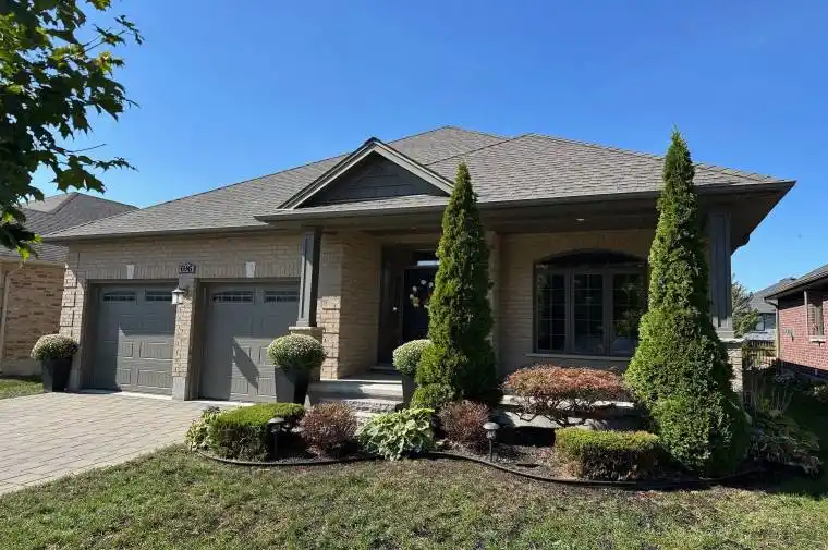 Incredible Value in This Former Model Ranch! Just 10-15 minutes between London and Strathroy, this beautifully maintained all-brick bungalow offers over 1,670 sq ft of luxury living on the main floor. The home features a spacious, open-concept layout with 10-ft tray ceilings, an inviting gas fireplace, and oversized windows that flood the space with natural light. The custom kitchen is a chefs dream – complete with granite countertops, stylish backsplash, under-cabinet lighting, and a large walk-in pantry. The well-appointed 2+1 bedrooms and 3 full bathrooms include a spacious primary suite with a walk-in closet and private ensuite. The professionally finished lower level adds (1135 sq ft) incredible living space with a full bedroom, full bathroom, large windows, and excellent lighting perfect for guests or extended family. Enjoy fully landscaped grounds, a fully fenced backyard, and fantastic outdoor living space including a covered front porch, a large deck, and a custom-built shed. Located in a quiet, family-friendly neighborhood just minutes from the 402, schools, parks, and local amenities. This move-in-ready home offers exceptional value – dont miss this opportunity! One call and you’re in! Note: Low property taxes.