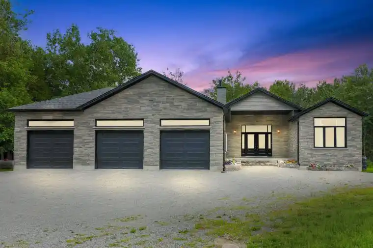 Welcome to 48 Private Acres of Custom Luxury Living. Experience the perfect blend of modern design and country tranquility in this stunning, newly built 5-bedroom, 3-bath custom home set on 48 spectacular acres just steps from Balsam Lake and the shops and restaurants of Fenelon Falls. Step through the front door and be greeted by soaring vaulted ceilings, a dramatic floor-to-ceiling stone fireplace, and expansive picture windows framing serene forest views. Open-concept kitchen, living, and breakfast area is an entertainers dream, featuring floor-to-ceiling cabinetry, a grand quartz island, double built-in stainless-steel fridge/freezer, and a walk-in pantry. A walkout leads to a spacious deck with a hot tub, creating seamless indoor/outdoor living. The generous primary suite offers a peaceful escape with a walkout to the deck, spa-style ensuite with glass shower and double vanity, and a walk-in closet. Two additional bright bedrooms on the main floor each offer picturesque views. Fully Finished Lower Level. The light-filled lower level is designed for comfort and versatility, boasting two more bedrooms, a full bath, a cold cellar, and a bonus recreation/man-cave area with a propane/wood-fired furnace. A convenient walk-up leads directly to the immaculate three-car garage. This property offers endless possibilities: enjoy the private pond, explore the expansive acreage, or make use of outbuildings for hobbies, storage, or future projects. A large mudroom/laundry area provides inside access to the garage with space for a potential extra bath. Acres of ultimate privacy and natural beauty Steps to Balsam Lake and charming Fenelon Falls Ideal for family living, entertaining, or creating your dream country estate. This extraordinary property is the perfect combination of craftsmanship, comfort, and convenience. Dont miss your chance to experience the pride of ownership and exceptional finishes a must see to fully appreciate.