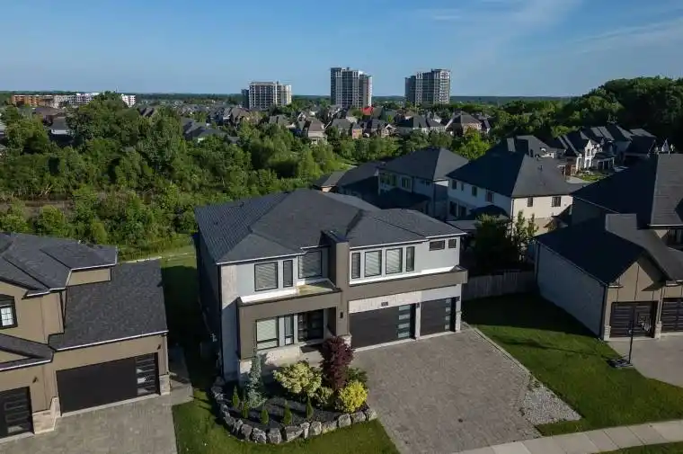 Custom-designed home offering over 5500 sq.ft of living space Situated on a 13,982 sq. ft STUNNING RAVINE WALK-OUT Massive LOT! This property is truly one of a kind. Featuring top-of-the-line appliances valued at $50,000+, custom window treatments, and attention to detail in every room. The main floor boasts 10 ft ceilings, the upper level 9 ft ceilings, and 8 ft doors throughout. Rich hardwood floors, extensive built-in cabinetry, and a dream kitchen with butlers pantry and walk-in pantry complete the luxurious interior.The upper level offers 4 spacious bedrooms and 3 bathrooms, including a grand primary retreat. The lower level showcases a walkout basement with wet bar, 2 additional bedrooms, and a large recreation room.Over $150,000 invested in the backyard, featuring a massive custom deck, tiered stone landscaping, built-in fire pit, and sprinkler system an entertainers dream and perfect for family living.Additional highlights include a formal dining room, main floor den with treed views, a dream laundry room with extensive cabinetry, triple-car garage, and a driveway accommodating 4 cars wide. 35-year shingles for long-term peace of mind.This home radiates quality and craftsmanship throughout.