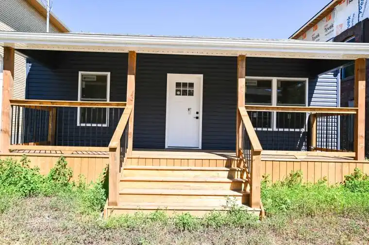 Super Cute . Completely re done back to the studs. This 2 bed 1 bath is bright airy and surprisingly large on the inside and one of the few that has a parking spot. This is a really affordable home.Everything is new and modern. The basement is full height and would easily accommodate further living space. Walking distance to schools, churches and shopping. Suit first time buyer, retirement or empty nester. No repairs and zero worries with even a small garden for those craving out door space or sit on the large front deck and watch the world go by. Taxes will be re assessed now the building is complete