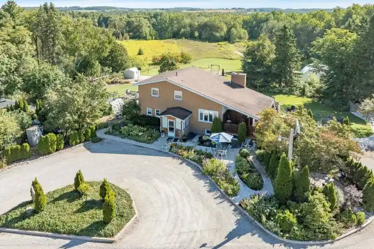 Top 5 Reasons You Will Love This Home: 1) Nestled on 12.5 picturesque acres, this exceptional property incorporates manicured lawns, vibrant gardens, and your very own private pond, offering a peaceful, storybook setting to call home 2) Designed for effortless entertaining, the open-concept layout features a soaring vaulted ceiling in the living room, an airy floor plan, and an abundance of natural light that creates a warm, inviting atmosphere 3) Upstairs, discover three bright and generously-sized bedrooms, each with double closets for ample storage, complemented by a centrally located family bathroom designed for everyday ease 4) The finished basement is a versatile retreat, perfect for movie nights, a games area, and extended family or guests 5) Perched above the backyard, the home offers sweeping views of the surrounding landscape, with ample space for a future shop or detached garage. 1,657 above grade sq.ft. plus a finished basement.