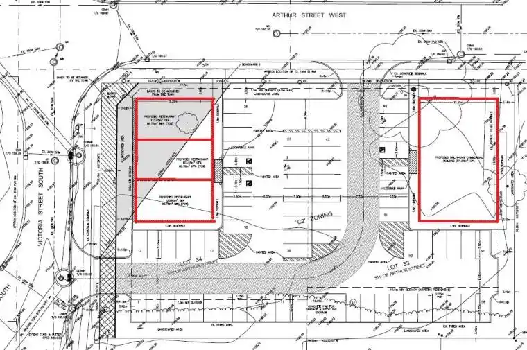 Prime new development commercial parcel available along Arthur St W/Highway 26 in the town of Thornbury. This site is ideally located between Collingwood, Meaford and Owen Sound. This high-exposure corner lot is directly across from large food and liquor retailers, and a gas station. Located just two blocks from Main Street Thornbury, the site is zoned for commercial retail development. This flexible new build opportunity is ideal for retail, service commercial or food uses looking to establish a presence in one of Southern Georgian Bay’s fastest-growing communities.