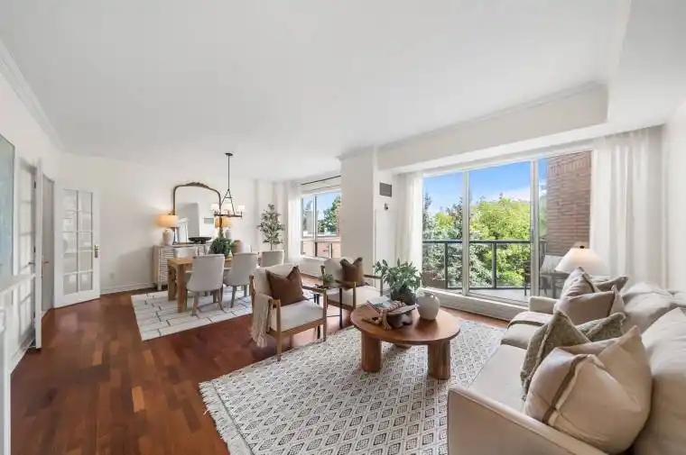 Welcome to Suite 713 at The Lawrence Park Condominiums, an expansive corner residence that offers over 1500 square feet of refined living space. Designed with timeless appeal and classic charm, this two bedroom, two bathroom suite includes two parking spaces, a locker, and enjoys both northeast and northwest serene green exposures with three walkouts and two private balconies that seamlessly extend the living experience outdoors.The thoughtfully conceived floor plan features an inviting foyer, spacious principal rooms with hardwood flooring and fireplace, a functional eat-in kitchen, and a private primary retreat complete with double closets, balcony, and a spa-inspired five piece ensuite bathroom. A generous second bedroom with custom built ins, a three piece bath, and ensuite laundry complete this elegant home.Life at 2727 Yonge is elevated by a curated collection of amenities including a resort style pool and spa, a rooftop terrace with sweeping city views, a fully equipped fitness centre, library, party room, concierge service, guest suites, visitors parking & more! Ideally located in Lawrence Park, this freshly painted residence combines the charm of an established neighbourhood with the convenience of being right on Yonge Street, steps to boutiques, cafés, green spaces, and transit. Suite 713 represents a rare opportunity to enjoy sophistication and lifestyle in one of Toronto’s most desirable communities.