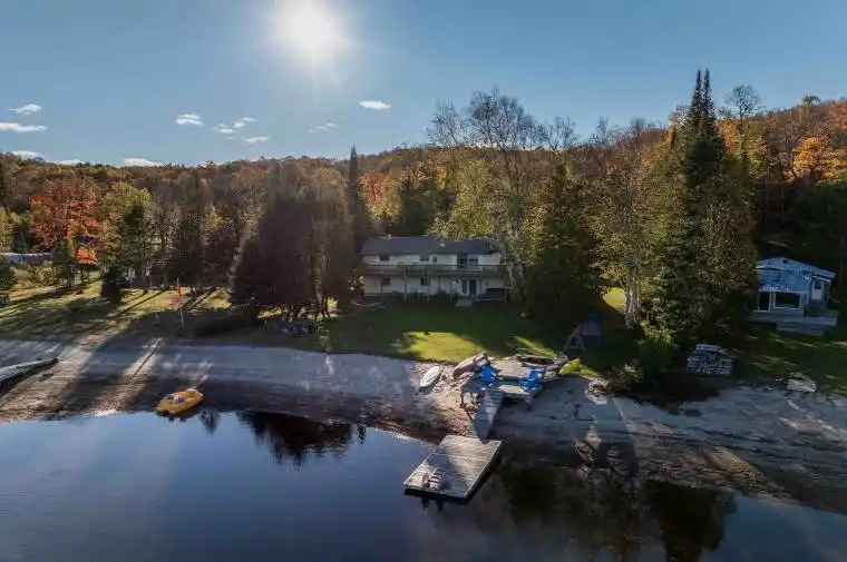 Wake up to sunrise views over Haliburton Lake, spend your afternoons swimming from your private sandy shoreline, and end the day soaking in your own lakeside hot tub. This stunning 5-bedroom, 3-bathroom year-round home or cottage offers the perfect blend of modern comfort and relaxed waterfront living on the highly sought-after Haliburton-Oblong 2-lake chain. With 2,256 sq ft of finished living space across two bright, above-grade levels, there’s plenty of room for family and friends. The main floor features an open-concept living and dining area with a cozy brick wood-burning fireplace and a walkout to a wrap-around deck with sweeping lake views. The spacious chefs kitchen includes an island, ample cabinetry, and picturesque sightlines over the water. A versatile den is ideal for a reading nook, office, or media room. Three bedrooms complete the main level, including a large primary suite with a beautifully renovated ensuite. The lower level is designed for entertaining, offering a sunlit rec room, games area, two generous bedrooms, and a 3-piece bath. Step outside to the hot tub overlooking the lake, perfect for unwinding after a day of boating, fishing, or swimming. Outdoors, the level lot makes lakeside living effortless. Enjoy your private sand beach, dock your boat with ease, and explore the 2-lake chain at your doorstep. A detached 1-car garage provides storage for all your gear. This turn-key property has been recently upgraded with a new HVAC system (2023) and comes fully furnished, just arrive and enjoy. Whether you’re seeking a family retreat, a year-round home, or a rental investment, this property offers it all. Located just 5 minutes from Fort Irwin, 30 minutes to Haliburton Village, and only 2.5 hours from the GTA, this lakeside getaway is both accessible and private. Rare opportunities on Haliburton Lake don’t last long, book your private showing today and start your lakefront lifestyle.