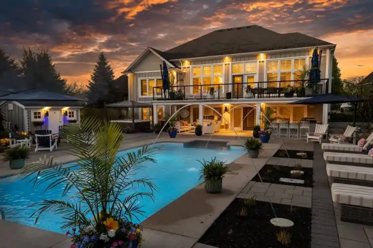 Breathe deeply at 59 Spinnaker Drive, every inch of this home is a sanctuary of calm and quiet elegance. Thoughtfully and Professionally curated in one of Ridgeways most peaceful and sought-after communities, this beautifully updated residence blends timeless charm with modern comforts. Step inside to discover an airy, open-concept main floor with soaring 16- and 12-foot ceilings, rich hardwood floors, custom trim, and solid-core 8-foot doors. Oversized windows with California shutters fill the space with natural light, while cove mouldings and a handsome Napoleon gas fireplace add warmth and character. The chefs kitchen is both elegant and practical, featuring in-floor heating, quartz countertops, a double oven, Sub-Zero wine fridge, LG appliances, built-in dishwasher, and a generous breakfast bar ideal for entertaining or a peaceful morning coffee. The main level also offers a serene primary suite with a spa-like 5-piece ensuite and walk-in closet, a second bedroom with a vaulted ceiling, an updated powder room, and a laundry area with direct garage access.Downstairs, a spacious recreation room with built-in office space and a second gas fireplace offers a quiet place to unwind. A third bedroom, full bath, and walk-out access to the backyard provide flexibility for guests or extended family.Enjoy year-round comfort with smart home features and built-in sound throughout including the balcony and patio. Outside, a private retreat awaits: a heated saltwater pool with LED fountains, 2024 hot tub with Covana automated gazebo, outdoor kitchen with built-in Napoleon BBQ, granite counters, and lush, irrigated landscaping. Additional upgrades include a whole-home generator, security system, central vac, and refined interior finishes. Just steps from beach access, near downtown Ridgeway and Crystal Beach with optional access to the Algonquin Club this is elevated living at a quieter pace.