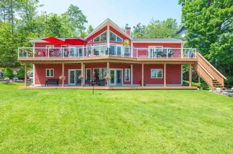 2 homes in 1 and a double lot. Wow is what you will say the minute you drive in to this beautiful Buckhorn Lake property. You will be amazed at the gently sloping lot, beautiful perennial gardens, and the commanding views of the lake from the 209 feet of frontage. This stunning home is finished to perfection on both floors offering 2 wonderful, self contained, living spaces with a separate entrance perfect for multi generational living or for family and visiting friends. Featuring 5 bedrooms, 4 baths, 2 propane fireplaces, 2 lovely custom kitchens, and magnificent views from both levels of the home, with the lower level also having its own primary suite with a full ensuite bath and walk in closet. The total finished area is 3,250 square feet. The two 60 ft decks expand the length of the home and are perfect for entertaining. Enjoy the rustic lakeside cabin as is or add your personal touches to this little gem. The double sized lot is nicely treed, gently sloping, and private. There is plenty of parking close to the house and alternative parking above with steps to the house. Close to marinas, shopping, and golf at Six Foot Bay is only minutes away. Buckhorn Lake is part of a five lake chain of lock free boating. Boat to Buckhorn or Bobcaygeon for lunch and shopping or enjoy an afternoon of watersports. This one of a kind home and property is situated on a well maintained, year round road minutes from a township road and school bus route.