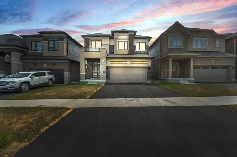 Welcome to 96 Hitchman st in Paris, ON. This beautiful 1-year-new home offers 4 spacious bedrooms and 3 full washrooms on the second floor, featuring a functional open-concept layout perfect for modern living. The main floor boasts 9-foot ceilings, rich hardwood flooring, and an elegant oak staircase. The sleek, modern kitchen includes a large island, built-in oven and microwave, and opens seamlessly into the living and dining areas. Enjoy added convenience with second-floor laundry and the privacy of no rear neighbors. Located just 2 minutes from Highway 403 and close to community centres, shopping plazas, and all essential amenities, this home combines comfort, style, and an unbeatable location.