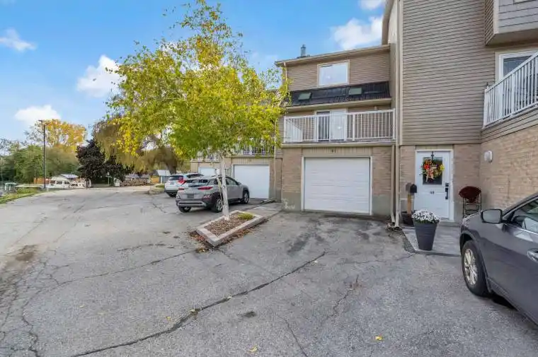 Nestled in a prime location within the complex, this stunning home has been professionally renovated from top to bottom (2025) with modern, neutral finishes, stylish fixtures, and thoughtful details throughout. Every inch of this space has been refreshed from the baseboards and light fixtures to the window coverings creating a fresh look you’ll love coming home to.The bright, open kitchen and dining area feature a patio door leading to a large deck with peaceful views of the green space and inground pool. The brand-new kitchen (2025) impresses with soft-close cabinetry, granite sink and modern lighting and ceiling fan. Energy-efficient GE Profile appliances included as well. Enjoy the abundant natural light from three skylights, one in the upper stairway and 2 in the living room (replaced in 2023 when the new metal roof was installed). The living room also boasts a gas fireplace and patio doors to a private rooftop deck overlooking the water. The spacious primary bedroom offers a walk-in closet, ceiling fan, and a large window with water views. The second bedroom is equally versatile, with ample space for a full bedroom set and desk area. The main bath features a rainhead shower for a spa-like touch.The finished lower level adds valuable living space, perfect for a den, office, gym, or guest room. The garage offers extra ceiling insulation, automatic opener, and room for your vehicle plus kayaks, bikes, and tools. Exterior updates include patio doors, exterior door, garage door, and rooftop balcony. Flooring throughout is a tasteful blend of ceramic tile, vinyl, and all-natural bamboo fibre carpet with cork underlay, providing both comfort and durability. Energy efficient furnace (2024) and central air (2018). Beautifully updated, bright, and move-in ready, this exceptional condo combines modern style, thoughtful upgrades, and a serene natural setting.