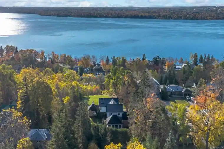 1.27-ACRE ESTATE IN BARRIE’S COVETED EAST END WITH 4,500+ SQ FT OF REFINED LIVING, A LUSH OUTDOOR OASIS & PANORAMIC VIEWS OF KEMPENFELT BAY – A RARE CHANCE TO OWN A PIECE OF BARRIE’S MOST PRESTIGIOUS LANDSCAPE! Welcome to an extraordinary 1.27-acre estate in Barrie’s east end, offering over 4,500 sq ft of living space on a quiet cul-de-sac just steps from Kempenfelt Bay. Walk to the beach, the Barrie Yacht Club and the North Shore Trail, with downtown dining, shopping, and entertainment only minutes away. Close to golf courses and only 20 minutes to Horseshoe Valley’s skiing, spas, and hiking, this property boasts park-like grounds with professional landscaping and an automated irrigation system. Enjoy a private outdoor oasis with gardens, rolling green space, and a pergola-covered deck dripping with lush foliage, offering sweeping bay views. Inside, walls of windows showcase panoramic bay vistas throughout the open-concept living and dining space, with a natural gas fireplace and deck walkout. The kitchen boasts built-in stainless appliances, an oversized island and a coffee bar, flowing into a bright sunroom with breathtaking lake and garden views. A family room with a built-in sound system provides an immersive media experience, while the spectacular indoor pool impresses with an Endless Pool Swim Spa, an integrated hot tub, vaulted ceilings, a natural gas fireplace, and expansive windows – fully ventilated for year-round enjoyment. Upstairs, four spacious bedrooms include a primary with dual walk-in closets, and a spa-inspired ensuite with a glass shower and a soaker tub. The lower level adds extra living space with a versatile rec room. The property falls under R2 zoning. Potential for future development, subject to City approval. This one-of-a-kind #HomeToStay offers timeless elegance, modern indulgence, and an unparalleled lifestyle in one of Barrie’s most desirable settings.