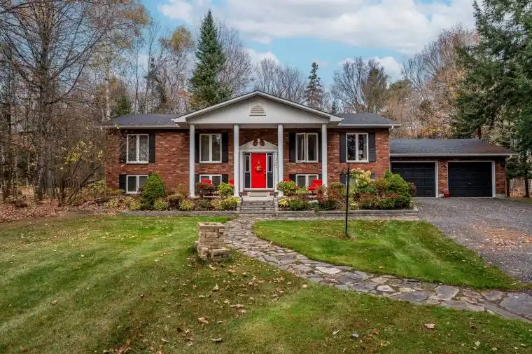Incredible opportunity to own this beautiful family home set on 1.76 acres of privacy on Fowlers Road in Huntsville. Features include 4 bedrooms, 2 1/2 baths & 2,912 sq.ft. of well maintained living space on 2 levels. Spacious & sunfilled living room, formal dining room and gorgeous eat-in kitchen with walk-out to rear sun deck offer great entertaining space. The large primary suite features a 5-piece ensuite & WIC. Guest bedroom & 3 piece bath complete the main level. The fully finished lower level boasts a cozy woodburning fireplace & bar area in the family room with W/O to patio & park-like back yard. 2 guest bedrooms, 2 pce powder room, laundry, utility rooms & loads storage space provided on this level. Convenient access to the attached 2-car garage from the laundry room. The level well treed lot provides great privacy & is set back from the road. Gorgeous perennial gardens and a lovely welcoming front porch greet you as you drive up the very private driveway ~ truly a gem waiting for the next family to love & enjoy!
