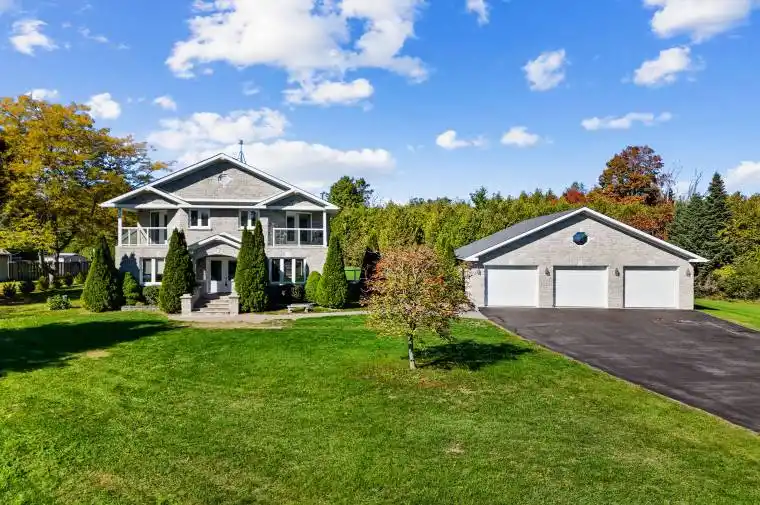 On the west end of Grafton, just steps from the shores of Lake Ontario, this spacious home combines comfort, functionality, and charm. A large front entry with a generous closet leads to an airy, carpet-free layout featuring a bright living room with expansive windows and a double-sided fireplace. The open dining area connects seamlessly to the kitchen and walkout, creating an ideal flow for entertaining or extending your living space outdoors. The kitchen showcases a tray ceiling, recessed lighting, tile backsplash, warm wood cabinetry, sleek countertops, and stainless steel appliances. The main floor also includes a bright bedroom with an ensuite bathroom for added convenience. Upstairs, the primary retreat offers dual walk-in closets and a private balcony with glass surround, perfect for quiet mornings with a coffee or evening relaxation under the stars. The ensuite features a double vanity, separate shower, and soaker tub. An open sitting area provides flexible space for an office, and a second-level laundry adds an extra touch of everyday convenience. The lower level extends the living space further with a large recreation and games room, a three-piece bathroom and potential for a guest suite. Outside, enjoy a deck overlooking a large, tree-lined yard, plus two detached garages for yard equipment or hobbies. The oversized drive-through garage with three bays and a hoist, adds incredible utility and safe storage for cars, boats, RVs or other prized possessions. An added bonus – the three-bay garage is heated with water and sewer connections and is pre-plumbed for a bathroom ready for those wanting to customize the space further. Set in a peaceful location close to amenities and with easy access to Highway 2, this property offers a perfect blend of country space and lakeside living.