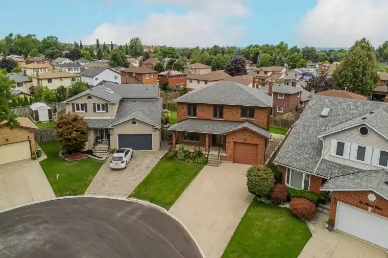 Nestled on a quiet court in the heart of Hamilton Mountain, this timeless family home combines space, warmth, and convenience in one inviting package. Situated on a desirable pie-shaped lot, it provides plenty of outdoor space while keeping you just steps from shopping, schools, parks, and everyday amenities. With 2,742 sqft of total living space, this home offers the ideal balance of private retreat and city convenience. The all-brick exterior is complemented by a perennial garden, a spacious front porch, and a concrete driveway that set the tone for the warmth inside. A bright entryway with a classic wooden staircase leads to a spacious living room with hardwood floors and a large window filling the space with natural light. The adjoining dining room offers plenty of room for family meals, while the eat-in kitchen boasts granite countertops, stainless steel appliances, tile backsplash, and abundant cabinetry. A family room with a brick surround wood burning fireplace opens to the rear yard, creating the perfect hub for gatherings. A convenient main floor bedroom and updated 3pc bathroom with a walk-in tile shower (2025) add versatility. Upstairs, hardwood flooring flows throughout. The expansive primary bedroom features a private 2pc ensuite, while three additional large bedrooms share a 5pc bathroom-ideal for a growing family. The partially finished lower level presents exciting potential with a separate walk-up entry from the garage, rough-in for a gas stove, rough-in plumbing, and a 3pc bathroom already in place. Out back, the fully fenced yard is a private escape with ample green space, a concrete patio, and a shed. Whether entertaining friends or letting kids and pets play, the yard is ready to enjoy year-round. A rare find combining space, character, and a family-friendly setting, this home is one you won’t want to miss!