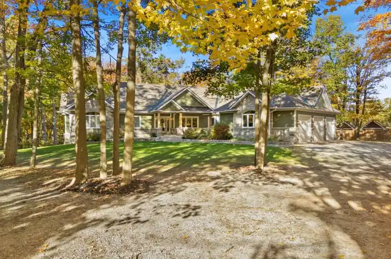 Welcome to your private getaway just 5 minutes from Orillia! This custom-built bungalow sits on a private 1-acre lot just a short walking distance to Bass Lake. The home has great curb appeal with stone and siding finishes, big gable peaks, and both an attached oversized 3-car garage and a detached 2-car garage with a loft above. Inside, you’ll find an open, functional layout with a hidden room tucked behind the kitchen cupboards – perfect for a pantry or home office. The 3-season Muskoka room is the ideal spot for morning coffee and is totally privacy with no neighbours in sight. The detached garage has water and hydro, high ceilings, and an 800 sq ft loft that’s great for storage or could be finished as an apartment. Downstairs, the fully finished lower level offers a bright in-law suite with two walkouts that make it feel like its own main floor. Thoughtful landscaping ties everything together, giving the whole property a warm, welcoming vibe.