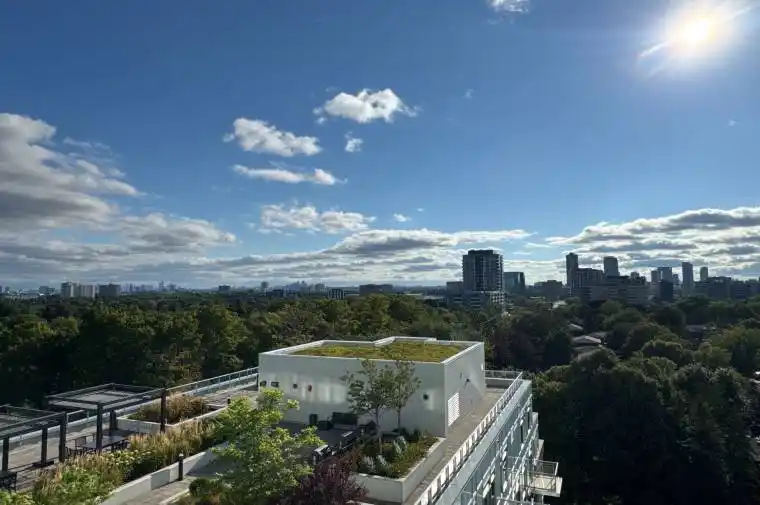 Experience modern city living in this beautifully maintained 829-square-feet, 2-bedroom, 2-bathroom condo unit. The suite’s open-concept design with 9-foot ceilings and laminate flooring creates a bright and airy feel. The primary bedroom features its own private bathroom and a walk-in closet, and you’ll love the scenic view of the rooftop garden. The building provides a wealth of amenities, such as a gym, theater, library, and a 24-hour concierge. Its prime location offers unmatched convenience, with TTC right outside, major highways, and downtown Toronto.