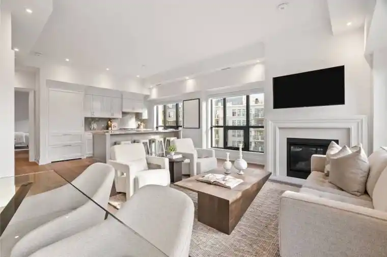 Welcome to an exclusive residence in the heart of prestigious The Kingsway. This boutique luxury building features just 34 suites and showcases timeless Beaux-Arts-inspired architecture by renowned architect Richard Wengle, with interiors by Brian Gluckstein. This rarely available corner suite offers approx 1,325 sqft of light-filled, elegant living space with 2 bedrooms, 2 full baths, and high-end finishes throughout. The open-concept living/dining/kitchen is surrounded by oversized windows that flood the space with natural light. The chefs kitchen is designed to impress with Quartz counters and backsplash, a centre island, premium appliances, and ample storage. The living area features a cozy gas fireplace, crown moulding, and remote blinds throughout. The spacious primary suite offers his & hers closets (including a walk-in), a luxurious 5-piece ensuite, and a walk-out to the balcony. Second bed perfect for office/guest room with spacious closet. Full 3pc 2nd bath. Additional highlights include in-suite laundry, 1 parking, 1 locker, and top-tier amenities: concierge, gym, lounge, and a large 3rd floor outdoor terrace with dining and lounging space. Steps to Bloor Street, Subway, Kingsway & Bloor West Village, Humber River trails and more. This is refined living at its best!