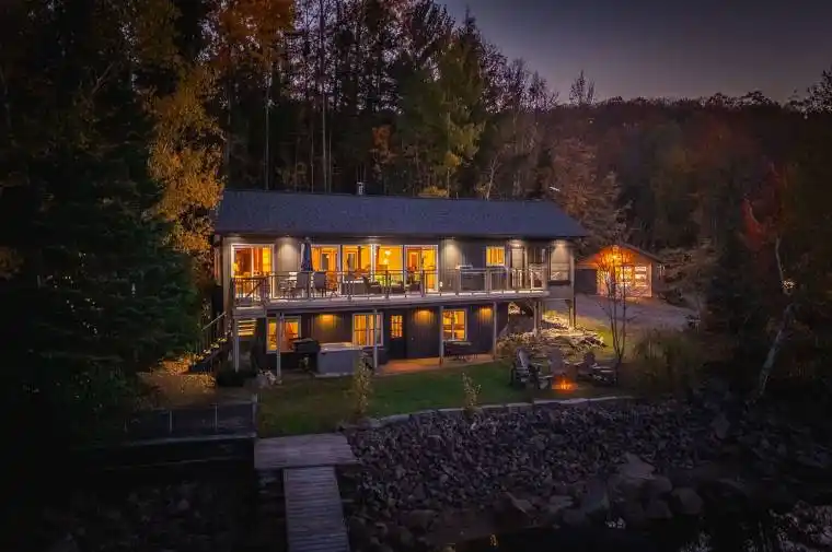 Welcome to your dream escape! This beautifully maintained 3 bedroom, 2.5 bathroom home sits right on the water’s edge, offering the perfect blend of comfort, functionality, and natural beauty. Whether you’re looking for a year round residence or a peaceful retreat, this property delivers. The open concept living, kitchen, and dining area is designed to impress, featuring wall-to-wall windows that flood the space with natural light and offer breathtaking, uninterrupted views of the water. A walk-in pantry adds extra convenience and storage for everyday living and entertaining. The spacious family room includes a cozy propane fireplace, creating a warm and inviting atmosphere. Just off the main living area, the screened-in porch complete with Sunspace windows lets you enjoy the outdoors in comfort, from spring through fall. Modern comforts include central air and a full standby generator for year-round peace of mind. Outside, enjoy both a shallow beach entry and deep water off the dock-perfect for swimming, kayaking, or boating right from your doorstep. Additional highlights include a 24′ x 34′ detached garage and an 11′ x 15′ outbuilding, ideal for a home office, gym, studio. Across the road, you’ll find extra parking and a pole barn for added storage. This rare waterfront gem combines privacy, thoughtful design, and stunning natural surroundings!