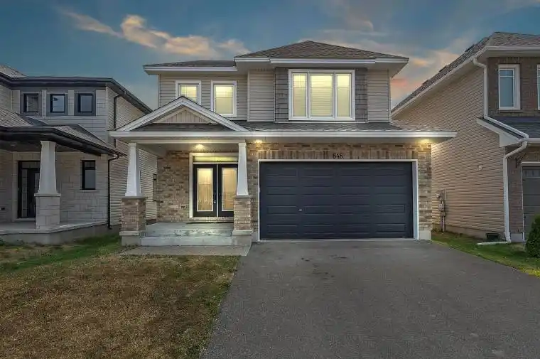 Welcome to 648 Halloway Dr a fully finished Tamarack Sable model offering 4 bedrooms, 3.5 baths, and flexible living space across three levels. Perfect for multi-generational living! Bright and inviting, the main floor features a chefs kitchen with granite counters, stainless appliances, and an oversized island, plus a home office, mudroom, and garage access. Upstairs, the spacious primary suite includes a walk-in closet, window seating, and a luxe 5-piece ensuite. Three additional large bedrooms and an oversized laundry room add daily convenience. The finished lower level is ideal for extended family, featuring an in-law suite with common entrance, a bedroom and den, 3-piece bath, and a second kitchen. Located on a quiet, family friendly street steps from trails, parks, and playgrounds and just minutes to shopping, CFB Kingston, the 401, KGH, and downtown.