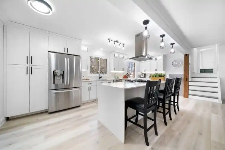 This beautifully updated home sits on a stunning 75 x 202 treed lot, backing onto peaceful greenspace in a sought-after Alcona neighbourhood. A standout feature is the bright, above ground, self-contained 1-bedroom apartment with its own entrance, kitchen, laundry, and hydro; ideal for extra income or in-laws. The main living space offers a BRAND NEW designer kitchen, open-concept living, three spacious bedrooms and a spa-like semi-ensuite bathroom with a custom 2-person shower and corner soaker tub. Also appreciate the basement flex-space completely separate from the apartment, offering an extra 500sqft for your personal use. Enjoy the professionally landscaped yard, Arctic Ocean Legend swim spa with 60 jets, impressive barn with hydro ideal for a workshop, storage, or hobby space, and a generator backup system – providing peace of mind year-round. Located just a short walk to local shops, parks, and Innisfil Beach Park, and with easy access to Hwy 400, this property combines lifestyle and convenience in one perfect package.
