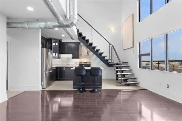 Experience fine urban living in this spectacular industrial, modern penthouse, perfectly tailored for young professionals, creatives, and entrepreneurs who crave style, sophistication, and connection to Hamilton’s vibrant core. Step inside to a soaring wall of windows that flood the open-concept living space with natural light and frame city views. The industrial-chic design creates a refined yet creative atmosphere that inspires both productivity and relaxation. The main floor features a contemporary kitchen, bright living room with walkout to the first balcony, convenient laundry room, bathroom, and a versatile bonus room with closet, ideal for dining, home office, art studio, guest room, or meeting space. Upstairs, the primary bedroom is a retreat, featuring a walk in closet and 5 piece ensuite bathroom. You’ll also find the second, larger balcony with bbq, perfect for morning coffee, entertaining, or late nights above city lights. Every detail has been designed for modern living, from smart Hue lighting throughout that sets the perfect ambiance, to high-end finishes and appliances that make this penthouse as functional as it is beautiful. Located in the heart of downtown Hamilton, you’re steps away from the city’s best cafés, restaurants, art galleries, co-working spaces, and nightlife, everything a dynamic professional lifestyle demands. Whether you’re an artist seeking inspiration or a business-minded achiever looking to stay connected, this condo is your ultimate home base. Live. Create. Thrive.