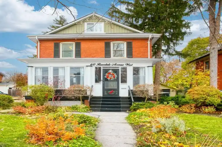 Welcome to 60 Rosedale Avenue West, a beautifully preserved century home in one of Brampton’s most storied neighbourhoods. Set among mature trees and heritage streets, this 2.5-storey red-brick classic blends early 1900s charm with over a decade of meaningful, high-quality updates. From the moment you step onto the enclosed sunporch, the home’s warmth & gentle energy are unmistakable. Inside, original wood trim, high ceilings, pocket doors, & rich hardwood floors create an inviting sense of history. The main level features a bright living room with a feature fireplace, a spacious dining room with original millwork. The refreshed kitchen has upgraded appliances, countertops & a separate coffee bar. A rare main-floor bedroom with an adjacent updated bathroom adds valuable flexibility for guests, multi-gen living or a home office. Upstairs, the 2nd level offers four comfortable bedrooms, each with it’s own personality. The standout, however is the re-imagined primary suite – a serene retreat with vaulted ceilings, beautiful ensuite, generous storage & a private balcony overlooking the deep, tree-lined backyard. The finished attic expands the living space with new flooring, oversized updated windows & endless potential for a studio, playroom, office or cozy retreat. Outside, the landscaped yard is private and welcoming, complemented by a multi-tiered deck, mudroom entry, and a detached garage with recent roof and siding upgrades. The home has benefited from extensive improvements, including major systems, windows, bathrooms, flooring, doors, garage updates, and more-providing outstanding peace of mind. Located steps from downtown Brampton’s shops, cafés, theatre, parks, and GO Station, this neighbourhood is experiencing exciting revitalization with improved walkability & community focus. This is a rare chance to own a piece of Brampton’s history-beautifully updated, full of character & truly cherished. This home is a must see. Book your showing today!