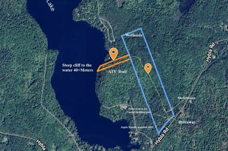Looking for an amazing getaway spot with tons of privacy and room to roam? This property has just under 30 acres of beautiful forest plus your own piece of lakefront on Salmon Trout Lake. The main section is 27.7 acres with road frontage, and there’s an additional 1.9-acre piece that leads right to the waterfront, it is very steep (cliffside 40+ meters) but the shoreline is clean and swimmable. An insulated bunkie is already on-site, set up for four-season use with200amp service and electric heat. You’ll also find storage sheds and the huge BONUS of a40x60ft metal building ready to assemble, delivered to the site from Canadian Metal Buildings-“Gretzky” model. To make your building dreams a reality 200-amp underground hydro has been brought into the lot, a retracement survey has been done, a permitted septic system was installed in 2023 and an area has been cleared and levelled for the the metal building pad. The land is gorgeous, with a mix of mature hardwoods and softwoods and a solid bush road that takes you back to the 100′ wide waterfront lot, where there’s a trail to the waterfront cliff and a great view. The waterfront is steep, but the rocky shoreline is stunning, and there’s a boat launch on the lake. Salmon Trout Lake allows motorboats and is known for great fishing. This is the kind of place you instantly want to explore-so much potential here, whether you want a family getaway, a hunting property, or a future build site. Almost 30 acres with lake access at this price is rare-don’t miss it!