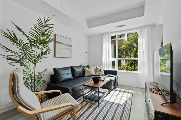 Rare ground-floor corner unit at Utopia Condos featuring 1 bedroom + den (converted to a true second room), 2 full bathrooms, and a private patio with direct courtyard access. Offering the privacy of a detached home with the convenience of condo living, this 690 sq ft home is filled with natural light, a spacious living area, a modern kitchen with ample storage, and in-suite laundry. The primary bedroom features an en-suite and offers courtyard views, while the den, complete with a full wall and door, is ideal as a guest room or office. An oversized locker located right beside the unit, along with 1 underground parking spot, adds unmatched convenience. Enjoy the building’s amenities, including a fitness room, rooftop patio, party room, and bike storage. Steps to Sobeys, Dollarama, schools, and parks, with minutes to the QEW and the upcoming GO Station, this is a rare opportunity for professionals, downsizers, or investors seeking modern comfort in a growing community surrounded by vineyards.