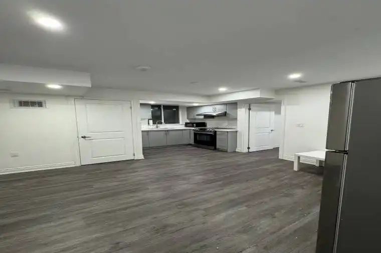 Spacious and bright One-bedroom + DEN legal basement apartment with a private entrance. This beautifully finished unit offers large windows in both the living room and bedroom, filling the space with natural light. Features include luxury vinyl flooring, smooth ceilings with pot lights, and a spacious open-concept living area. The kitchen features stainless steel appliances, ample counter space, and sleek modern cabinetry. The 3-piece bathroom showcases a quartz vanity, glass-enclosed shower, and elegant porcelain tiles. Enjoy the convenience of a private laundry and exclusive driveway parking. Nestled in a quiet, family-friendly neighbourhood, this clean and stylish apartment is move-in ready and perfect for comfortable living.
