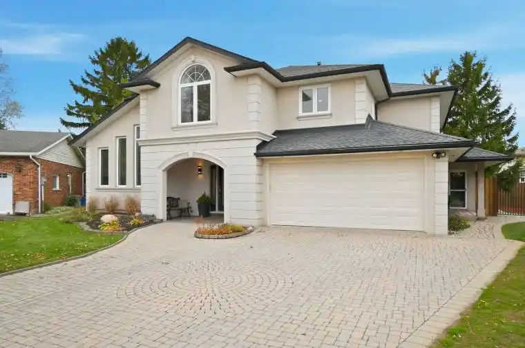 12 Fuller Crescent blends scale, privacy, and sophistication across nearly 4,800 sq. ft. of finished living space, set on an impressive 207-foot deep lot. Arriving here feels intentional – the quiet circle, the mature trees, the beautifully landscaped grounds, all setting the stage for a home designed for those who appreciate both elegance and ease. The backyard is a private resort where an inground pool, expansive deck, patio, and a serene pond come together to create a truly elevated outdoor living experience. Whether hosting gatherings or enjoying quiet mornings, this space delivers a remarkable level of tranquility and exclusivity. Inside, thoughtful design and generous proportions define every room. The main floor offers an elegant flow anchored by a grand great room, a kitchen that stretches into the outdoor space, a formal living area spanning nearly 30 feet, a dedicated office, and the convenience of main floor laundry. Large windows and seamless sightlines enhance the sense of openness and natural light. The second level offers yet another private getaway with a spacious primary suite featuring a spa-inspired 5-piece ensuite. Three additional bedrooms, another full bathroom, and a comfortable sitting area ensure ample space for family and guests.The fully finished lower level elevates the property even further with a complete in-law suite. A full kitchen, living area, bedroom, and full bathroom. This level caters effortlessly to multigenerational living, guests, or long term accommodations.