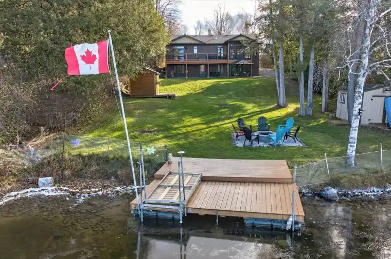 Welcome to your multigenerational lakeside retreat on the Trent-Severn Waterway. This custom-built lakefront home sits on a private lot with 75 ft of direct waterfront on stunning Pigeon Lake, offering unforgettable views and a true four-season lifestyle. From the moment you arrive, you’ll feel the comfort of a turn-key, fully furnished home, thoughtfully styled with luxury finishes and ready for immediate enjoyment. Designed for flexibility, this property is ideal for multigenerational families, those seeking income potential, or anyone wanting a peaceful, private waterfront haven. Step inside to an open-concept living space featuring a quartz center-island kitchen, beautiful finishes, and a cozy living room with a fireplace. A bright sunroom and expansive deck allow you to embrace lakeside living from sunrise to sunset. The fully finished walkout basement is perfect for extended family or guests, complete with large windows framing the waterfront, a full bath, a fireplace, and direct access to a lakeside patio. Outdoors, enjoy direct water access, a private dock, and peaceful surroundings. Two outdoor sheds offer the opportunity to create a funky bunkie, studio, or additional storage, and the detached garage adds even more convenience. Whether you’re seeking privacy, family living, or a luxurious water’s-edge escape, this exceptional property delivers. Just move in, relax, and embrace the waterfront lifestyle you’ve been dreaming of.